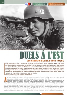 Front gigantesque et le plus meurtrier de la Seconde Guerre mondiale, champ de bataille «total» où la fureur des armes côtoie l’anéantissement humain et le choc des idéologies, le front de l’est se résume pour certains aux chevauchées des Panzer de « Barbarossa », aux combats acharnés dans les ruines de Stalingrad, et au rouleau compresseur de l’Armée rouge qui pulvérise la Wehrmacht en 1944 et 1945, jusque dans les bunkers lugubres de Berlin. Sur ce front immense, les snipers, moins mis en lumière que les Panzergrenadiere, commandos « Brandenbourg » ou frontoviki, ont pourtant joué un rôle croissant et parfois décisif, même si la « culture » du sniping était très différente selon les armées.